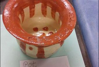 Ma Charlotte est très habile de ses dix doigts et aime beaucoup bricoler. Pendant les vacances de Noël, elle a fait un stage de poterie à la MJC et en a profité pour préparer des cadeaux pour toute la famille. Pour son grand-père, ce magnifique bol à pipe, accompagné d'un joli dessin digne de Magritte.