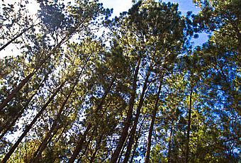 Lors de la randonnée du week-end dernier, on a fait un bout dans un petit joyau écologique du pays. J’écris ‘petit’ dans la mesure où il n’en resterait presque plus, la Fondation Séguin travaillant fort pour conserver ce trésor. Une forêt de pins ! Comme au Québec. Les mêmes odeurs, la même lumière, la même fraîcheur et le même type de sol. En altitude, on est assez haut (2800 mètres si les données sont justes) pour maintenir la température voulue.
