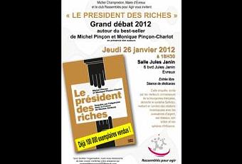 Jeudi 26 janvier 2012 à 18h30, salle Jules Janin à Evreux, venez débattre avec Michel PINÇON et Monique PINÇON-CHARLOT, les auteurs du livre "Le président des riches".