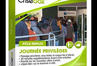 [Humour]. « Face à la crise, les cadeaux futiles deviennent utiles. Bien loin du week-end gastronomique dans le Sud-Ouest ou du massage relaxant dans une ambiance chic et feutrée, les ©Crisebox sont des coffrets cadeaux qui donnent un petit coup de pouce au quotidien difficile des Français les plus modestes. »