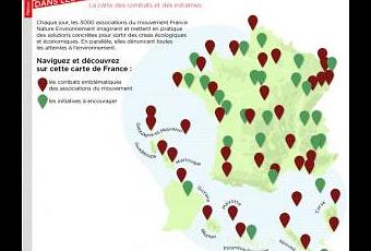 Le site de France Nature Environnement publie actuellement une carte interactive très bien conçue qui a pour particularité de présenter l’ensemble des lieux d’atteinte à l’environnement, en France métropolitiaine mais aussi dans les départements et territoires d’Outre-mer, pour lesquels les associations qui constituent ce mouvement se battent.