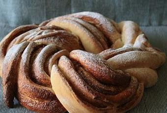 Recette imprimée et testée deux fois donc: une première fois avec un fourrage "classique" à la cannelle; et une deuxième fois avec un fourrage un peu plus local-Moyen-Orient avec le sirop de dates et du chocolat. Résultat des courses: une brioche qui ne reste pas longtemps sur la table de la maison, ni dans le coin "machine à café du bureau". Merci Isa pour cette belle idée!