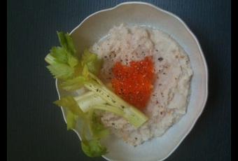 Servir avec du céleri branche, des œufs de saumon ou même du caviar J (vrai ou faux)