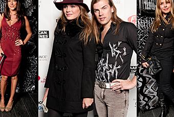 Natacha Amal, resplendissante dans une robe noire bordée de plumes et rebrodée, a tenu à découvrir les quelques robes en tulle de soie de la nouvelle collection automne-hiver 2012-2013 exposées par Christophe Guillarmé.