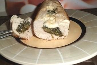 Déposer l'escalope à plat sur un grand morceau de cellophane puis parsemez d'un boudin d'épinards et de vache qui rit . Refermez l'escalope puis reserrez en formant un boudin à l'aide du cellophane . Déposer le boudin dans l'eau bouillante pendant 15 minutes .