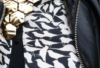 Jupe & chemise (shirt & skirt) / Zara, Veste (leather jacket) / H&M, collier (necklace) / Topshop