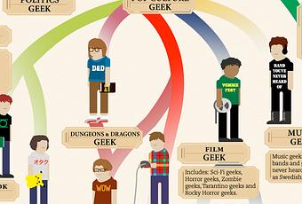 Mais lorsqu’on aborde les dénominations geek, là ca fuse moins. Mais cela ne saurait durer, ami(e)s geeks, réjouissez-vous ! Dan Martell a publié sur son blog Flowtown une infographie du geek. Bon d’accord l’info n’est pas jeune, mais il me semblait indispensable pour ScientiGeek de relayer cette information, comme ca vous n’errerez pas sur les pages du site en vous disant « Qui je suis, où vais-je… ». Mais trêve de bavardages, voici la fameuse :