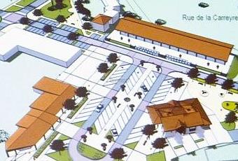 Concernant la partie nouveaux bâtiments (la partie en blanc et en L à gauche sur le plan), rien n'est encore décidé, tant sur sa forme définitive que sur les commerces ou services qui l'occuperont. Une seule certitude la mairie restera à son emplacement actuel.