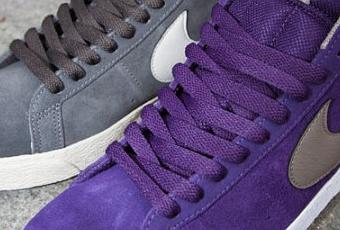 Pour le printemps prochain, Nike SB a prévu de sortir deux nouvelles Nike SB Blazer, coloris Qsr Purple / Black-White-Gum Light Brown et Midnight Fog / Birch.