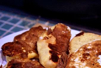 ça donne une version canado-polonaise du pain doré :-). Eh oui, les ami(e) suite au nombreuses festivités associées à l'anniversaire de mon fils, nous sommes restés avec plein de "restes" de tout genre, dont le pain. Des morceaux de baguette, du pain aux noix et du pains de seigle directement du magasin polonais...Avec touts ces restants l'Homme nous a confectionné un délicieux déjeuner au pain doré. Et juste pour rajouter un peu de saveur québécoise sur le pain polonais quoi de mieux que du sirop d'érable. Un vrai délice les ami(e)s ! Et je vous présente les photos ci-dessous dans le cadre du Mercredi gourmand de notre charmante Anne Laure T. Et je crois que ça passe le Bobo-test !