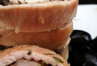 Étaler le beurre au persil et aux olives sur chaque blanc et les rouler.Maintenir avec une pique en bois ou si nécessaire, avec de la ficelle alimentaire.