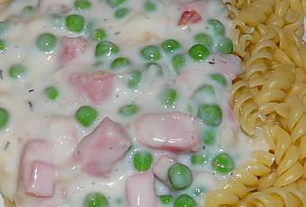 Ajouter la mozzarella en petits morceaux, et le parmesan, remuer jusqu'à ce qu'il soient fondus. Ajouter le jambon et les petits pois, assaisonner et garder au chaud.
