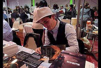 Le voici en train de me dédicacer mon intégrale des Chroniques des Féals...