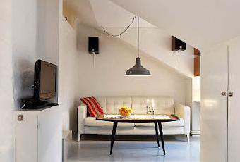 This 35 sqm flat in Sweden is a great example of how to make the most of small spaces. A white and simple base, lots of hidden storage, clearly defined areas for different functions, and smart and flexible solutions (like the loft bed or the kitchen cabinet on wheels...). And I love how the ladder almost becomes a work of art with Kay Bojesen's wooden monkeys climbing on it!