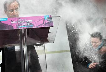 socialiste à la présidentielle François Hollande a été enfariné par une femme. Il participait à la présentation du rapport de la fondation Abbé Pierre sur le logement. (youtube)