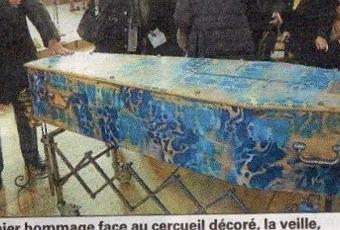 Son épouse avait décoré le cercueil et la croix de motifs bleus.