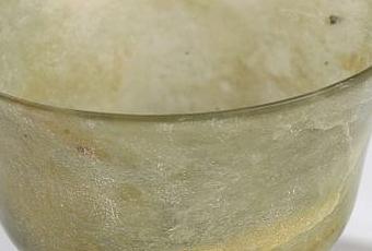 Fine coupe sur pied en couronne à marli évasé en jade translucide vert épinard.