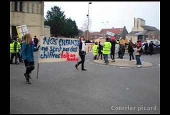 Élus, enseignants, parents d’élèves et écoliers se sont mobilisés, hier pour protester contre les fermetures de classes que prévoit la carte scolaire 2012-2013 telle qu’elle a été présentée en fin de semaine dernière. Au regroupement pédagogique intercommunal d’Aubigny-Vecquemont, une suppression de classe est effectivement annoncée. Tout comme à Villers-Bretonneux et Fouilloy. Ce sont donc des parents-d’élèves de ces trois écoles qui se sont retrouvés en fin d’après-midi au rond-point du centre-ville de Fouilloy.