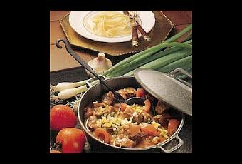 - Couvrir et cuire à feu doux 2 h 30 mn. Servir dans le plat de cuisson.