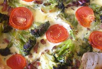 Cuire le brocolis à la vapeur. Cuire les lardons à la poele, puis rajouter les brocolis en fin de cuisson. Mélanger les oeufs, la crême fraiche et le lait, puis rajouter du sel et du poivre. Etaler la pâte. Déposer les brocolis et les lardons. Rajouter les morceaux de Saint marcelin. Napper du mélange oeufs/crême fraiche/lait puis décorer avec les tomates.