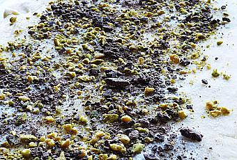 parsemez dessus des éclats de chocolats et de pistaches (que j'avais concassés au cook'in)