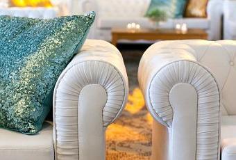 Les coussins a paillettes: bleus et dorés, ils sont élégants