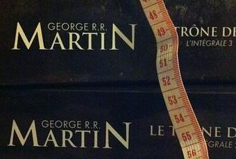 environ 3681 pages, des épées, de l'esprit, du sang, de la rage, du poison, des rois, de la trahison, des geoliers, des dragons, du pain rassi, des corbeaux, des princesses, du courage, des dagues, des mestres, de l'amitié, des champs de bataille, un nain, des mamouths, des morts vivants, des bâtards, des hurlements, de l'or, des chevaux, de la magie, des bateaux, du vin, des tours, des armées, des espions, du fromage moisi, des loups garous, des heaumes, des châteaux, des flêches, des remparts, des cachots, la mort à chaque tournant, et bien sûr, l'hiver.