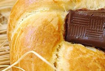 Laisser lever 1h puis déposer au centre un carré de chocolat et badigeonner une nouvelle fois.