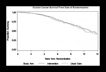 10% de faux-positifs entraînant une intervention inutile chez près de 3% des patientes : 118 décès causés par le cancer de l'ovaire sont intervenus durant le suivi, 3,1/10.000 années-personnes) dans le groupe avec dépistage et 2,6/10.000 années-personnes dans le groupe suivi standard. 3.285 femmes soit près de 10% ont obtenu des résultats faux-positifs, 1.080 ont subi une intervention chirurgicale inutile, 163 ont présenté au moins 1 complication grave (15%) à la suite de cette intervention. Donc non seulement le dépistage CA-125 + échographie transvaginale ne permet pas de réduire la mortalité par cancer de l'ovaire mais les faux-positifs sont fréquents et fréquemment suivis d'interventions inutiles et de complications.