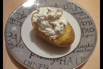 Couper chaque pomme de terre au tiers dans la longueur. Les creuser légèrement et recouvrir de fromage blanc aux herbes.