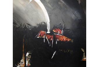 L’élément qui se remarque en premier est la trainée de peinture blanche qui semble toucher une ville brulante au milieu, elle pose des questions comme « qu’est-ce qui se passe ? » et « est-ce que c’est une ville, ou est-ce que c’est quelque chose d’autre ? », mais ces questions n’ont pas de réponse. Pour moi, c’est une représentation d’une ville qui brule dans la nuit : il y a de la colère, de la souffrance, du désespoir…mais pour vous, il pourrait montrer quelque chose d’entièrement different : l’amour, la solitude, c’est à vous de décider. On trouve la signification dans tous les éléments : la texture qui change, les inscriptions de jaune cachées dans le noir, la façon dont les rouges semblent luire en generant de l’angoisse…tous ces éléments donnent un sens à l’abstraction de ce tableau, car les interpretations restent personelles à chacun.