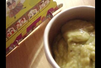 du jus de fruit ou de légumes pour obtenir l'aspect désiré (crème ou plus liquide)