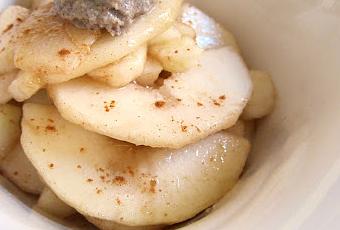 2 poires Le jus d'un demi citronUne pincée de cannelle