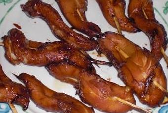 - Au moment de les cuires, enfiler le poulet sur des piques à brochettes et les mettres sur la plaque du four, recouverte d'une feuille de papier cuisson,