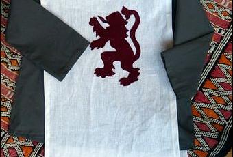 Voilà. J'ai éludé la dernière difficulté en collant le motif de lion au lieu de le coudre ...sauf qu'il porte un peu à gauche, mais on dira que c'est parce qu'il s'agit du coeur du lion .....