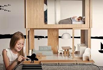 Deux modèles de maison (199 ou 399 euros), fournis avec les meubles, tous plus contemporains les uns que les autres, des matériaux nobles, des finitions à la main, un "jouet" pour les poupées de 30 cm... vous pouvez même choisir le papier peint.