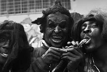 Pas le vrai, celui de Jacmel. Tout le monde sait qu’il y a le faux carnaval de Jacmel, celui que les blancs visitent, et le vrai qui aura lieu la semaine prochaine. C’est un peu comme une répétition générale aujourd’hui. Dimanche, lundi et mardi prochain, ce sera ‘la vraie affaire’. Cette année, il y a parfum de scandale autour du ‘vrai’ carnaval national. Il a toujours eu lieu à PAP (selon la mémoire des historiens qui sont ici comme les gérants d’estrade au chevet de ‘nos Canadiens’, tous des experts) alors que cette année, on fait une première, on le déménage au Cayes. Une ville du sud. Offense aux bonne mœurs et à la culture nationale-ancestrale, un peu comme si le Bonhomme Carnaval sortait du fleuve à la hauteur de Trois-Rivières parce que la terrasse Dufferin était en réparation. Inimaginable… Ici, c’est parce que le Champ de Mars est encore rempli de campeurs et que les fêtards et les campeurs, à part au Noël des campeurs, ça ne fait pas toujours bon ménage. Le gouvernement a donc choisi de déplacer le carnaval national du côté des Cayes, décision critiquée par tous et qui au plan de la logistique, semble un peu incongrue. L’ex-candidate à la présidence, l’intellectuelle-normalement-retenue-madame-Manigat a même pris le micro d’un poste de radio pour claironner que cette décision du gouvernement était une tentative du pouvoir de procéder plus facilement à des activités de blanchiment d’argent, le coins des Cayes ayant la réputation d’être un des terrains de jeu préférés pour les trafiquants. On ne sait toujours pas si le tout aura lieu au Cayes, l’argent qui devait venir de l’État se ferait toujours attendre et le responsable de la fête vient de donner sa démission. Une chose est certaines, les gens de la capitale vont quand même faire leur carnaval. Ils s’entrainent tous les dimanches depuis le début janvier et seront donc prêts pour le prochain weekend. Ce soir, en revenant de la mer, on a croisé ces fêtards qui font peur à tous ceux qu’ils croisent sur la rue. Vous les trouverez également sur youtube.