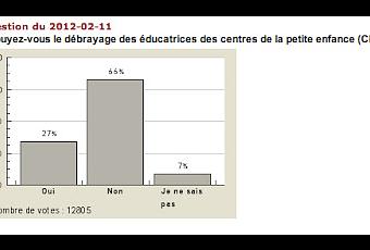 Ce qui me surprend, c'est que sur 12 805 votes, 66 % sont contre le débrayage des éducatrices des centres de la petite enfance.