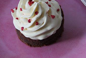 Faites fondre le chocolat blanc au bain marie . Faites bouillir la crème , les 55 gr . Versez la crème fraîche en 3 fois dans le chocolat blanc pour obtenir une belle ganache . Il faut mélanger énergiquement . Ajoutez les 135 gr à la ganache , mélangez et filmez , placez au frais pour 3 heures .Fouettez à l'aide d'un robot pour monter la crème comme une chantilly . Dressez sur le gâteau au moment de servir à l'aide d'une poche à douille . Vous pouvez décorer avec des morceaux de framboises séchées .