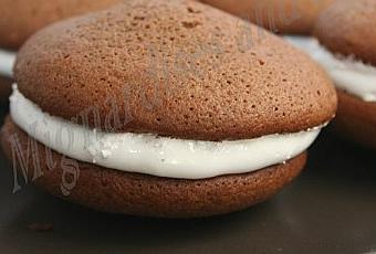 Laisser refroidir sur une grille, puis disposer une cuillère de pâte de chamallow et déposer un deuxième gâteau en appuyant légèrement.