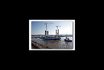 Dans le froid polaire mais sous un grand soleil, les travées gauches du futur pont Bacalan-Bastide ont fait hier, comme prévu, leur entrée dans le port de la Lune.