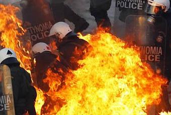 De violentes manifestations réunissant 80 000 personnes à Athènes selon la police, ont littéralement enflammé Athènes, avec une quarantaine de départs de feu ou incendies dans des bâtiments ou équipements du centre, selon un communiqué du ministère de la Protection du citoyen.