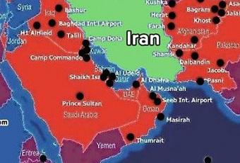 Bon tout ça pour vous présenter cette carte qui montre bien que l'Iran est sur le point d'agresser ses voisins. On leur a coupé les vivres, on les interdit d'exporter du pétrole vers l'Europe, on a bloqué les comptes de leur banque centrale. Mais on sait, chacun de nous sait, que c'est eux les méchants!