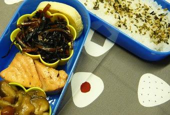 C'est ce que je fais souvent moi-même car je n'ai en général pas le temps ou l'énergie de préparer un repas de bout en bout. Par chance, ce lundi, où je disposais de peu de temps, j'ai pu bénéficié de quelques restes du délicieux déjeuner japonais de la veille : du saumon, de l'omelette, du riz, une salade d'algues-carottes et j'y ai ajouté une petite poêlée de champignons variés.