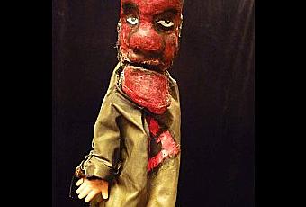 Je me souviens, lors mes premières apparitions, coiffé d’une chaussette noire, je n'étais pas rouge. Aujourd’hui rouge et vieilli, peau craquelée, plâtre et enduits, je suis à l'image du contact avec les milliers de mains. Celles qui, curieuses, après la chaleur d’une représentation, voulaient sentir « mon vide ». De chacune, j’ai gardé une trace. De chaque représentation, elles ont été nombreuses et l’auteur ne les compte plus, j’ai tiré la substance qui fait de moi ce que je suis.