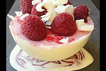 Déposer cette mousse dans la demi-sphére, décorer avec quelques framboises.