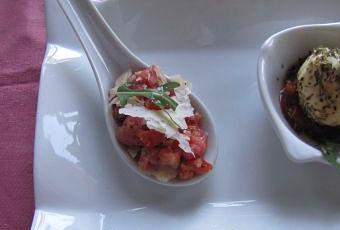 - Préparer le tartare en mélangeant le bœuf, les tomates, les copeaux de parmesan et le basilic