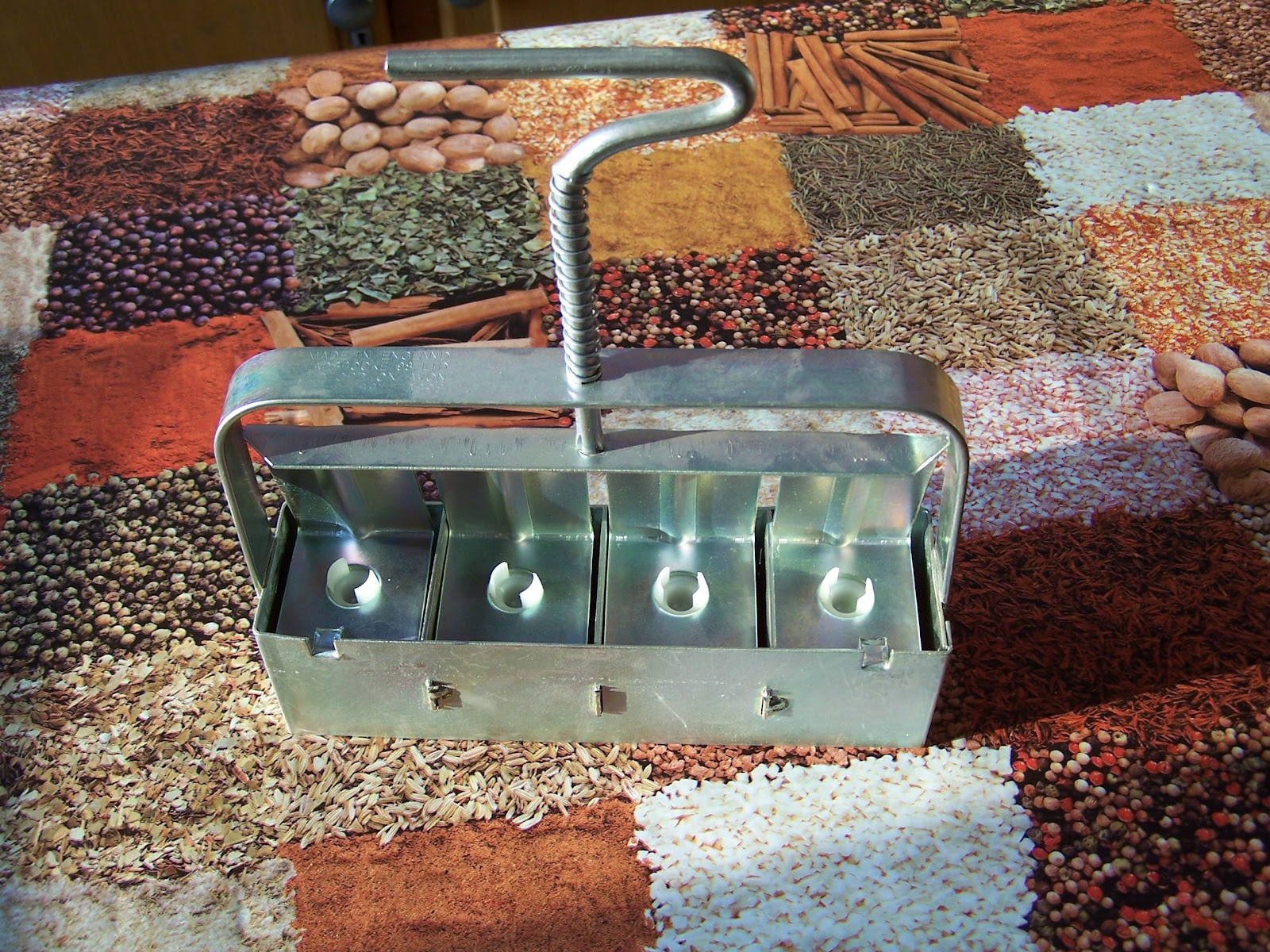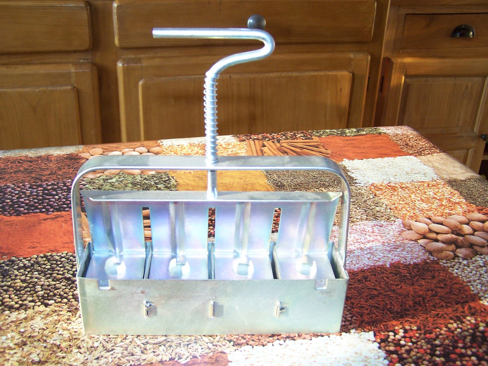 Je disposais d'un presse motte en plastique acheté 3 francs 6 sous il y a quelques années, mais il est petit et pas très pratique, le ressort se coince souvent. Résultat, chaque année, pleine de bonne volonté, je commence avec et au bout de 5 à 6 mottes, je laisse tomber.