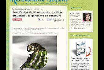 Le concours chez Mademoiselle Dentelle est maintenant terminé, un bon d'achat de 50 euros valable sur toutes les créations signées "la Fille du Consul" était en jeu, et c'est "micheledu94600" qui a été désignée comme gagnante par la main du sort.