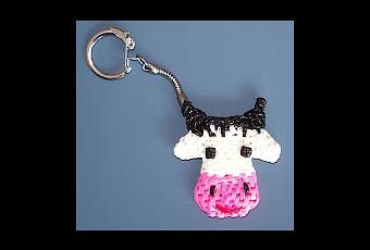 J'ai réalisé ce scoubidou pour ma chérie qui collectionne les sujets "vache", donc à partir d'une image que j'ai trouvé sur le web j'ai réalisé ce scoubidou avec la technique du triangulé à plat (je vous expliquerai cette technique dans un futur article) auquel vient s'ajouter les techniques d'ajout et suppression de fils ainsi que les liaisons.J'ai commencé par réaliser un croquis qui m'a parmi de savoir où j'allais ajouter ou retirer des fils, où j'allais changer les couleurs et où j'allais faire des liaisons. Ce scoubidou démarre par le museau en fil rose auquel il faudra insérer un fil rouge pour la bouche et un fil noir pour les narines, ensuite j'ai continué en fil blanc en n'oubliant pas de laisser de quoi faire les oreilles, puis j'ai laissé en attente pour finie par les cornes en noir lorsque les oreilles auront été tressées. Les yeux eux on été ajouté en dernier.